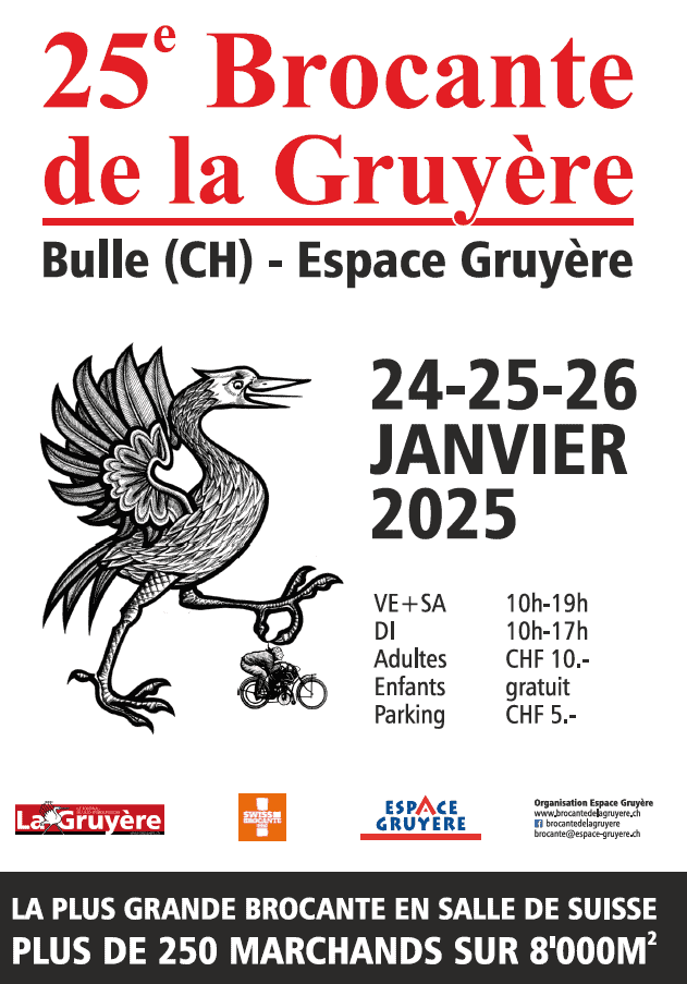vom Freitag, 23.01.- Sonntag 25.01.2026 sind wir mit einem Stand an der Brocante in Bulle vertreten.