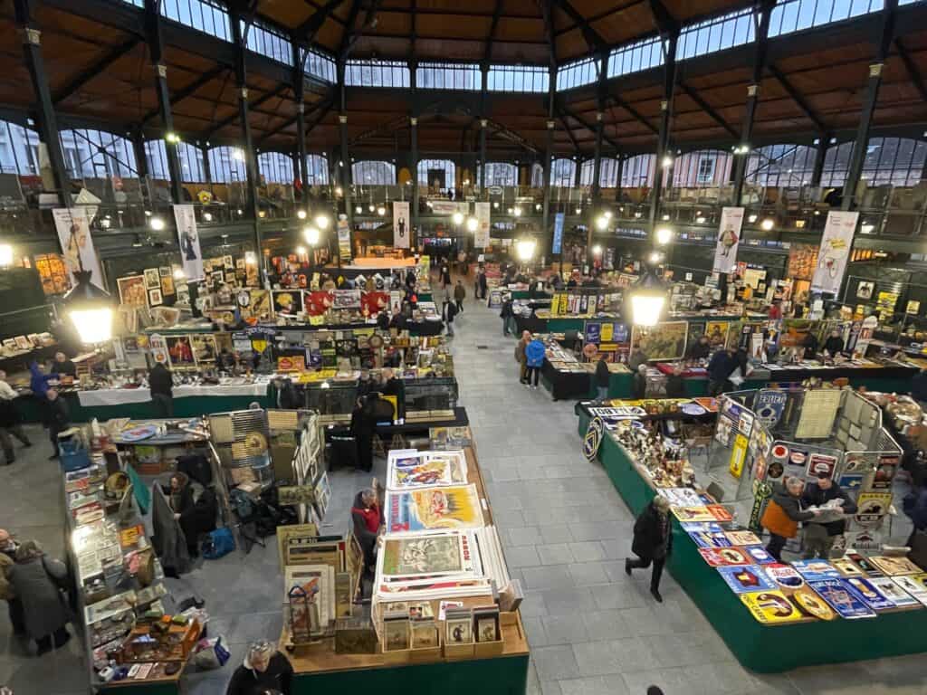 Von 8.00 bis 15.00 Uhr verwandelt sich die Markthalle an der Place de la République, in einen Treffpunkt für Sammler, Händler und Liebhaber nostalgischer Werbekunst.