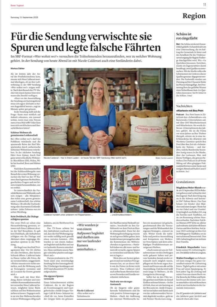 Ein toller Artikel in der Zeitung Biel Bienne zur Eröffnung des Vintage-Bistro   by Antik-Unique