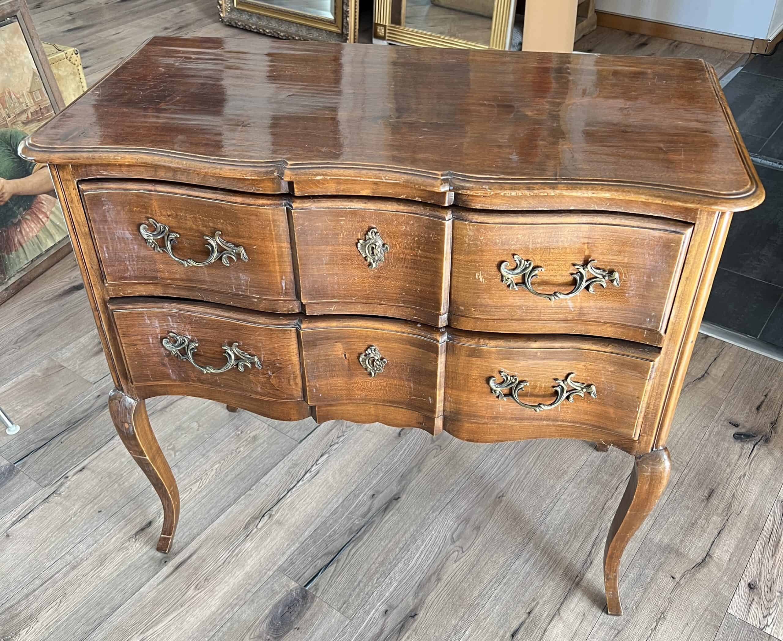 Sehr dekorative Kommode, französische Schreinerarbeit, mit Messinggriffen. Guter Zustand mit leichten Gebrauchsspuren.