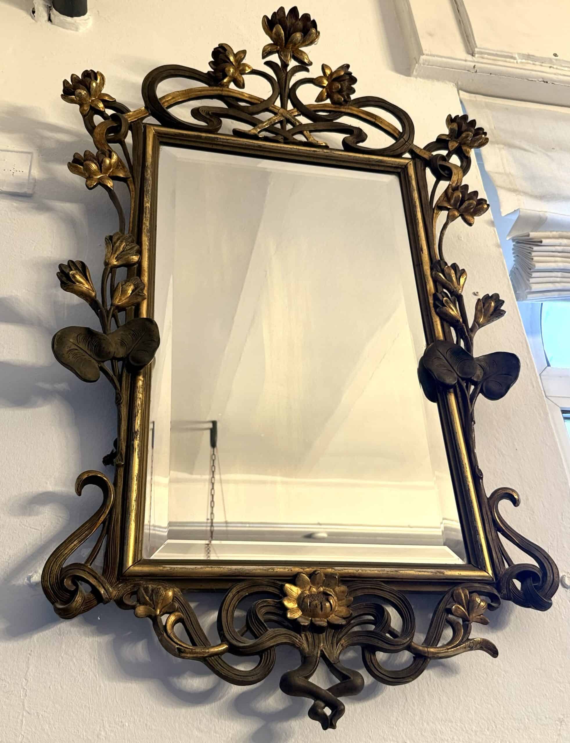 Einmaliger Jugenstil Spiegel mit Floralem Dekor. Wirklich ein einzigartiges Stück, in dieser Art und Zustand wohl nirgends mehr zu finden.