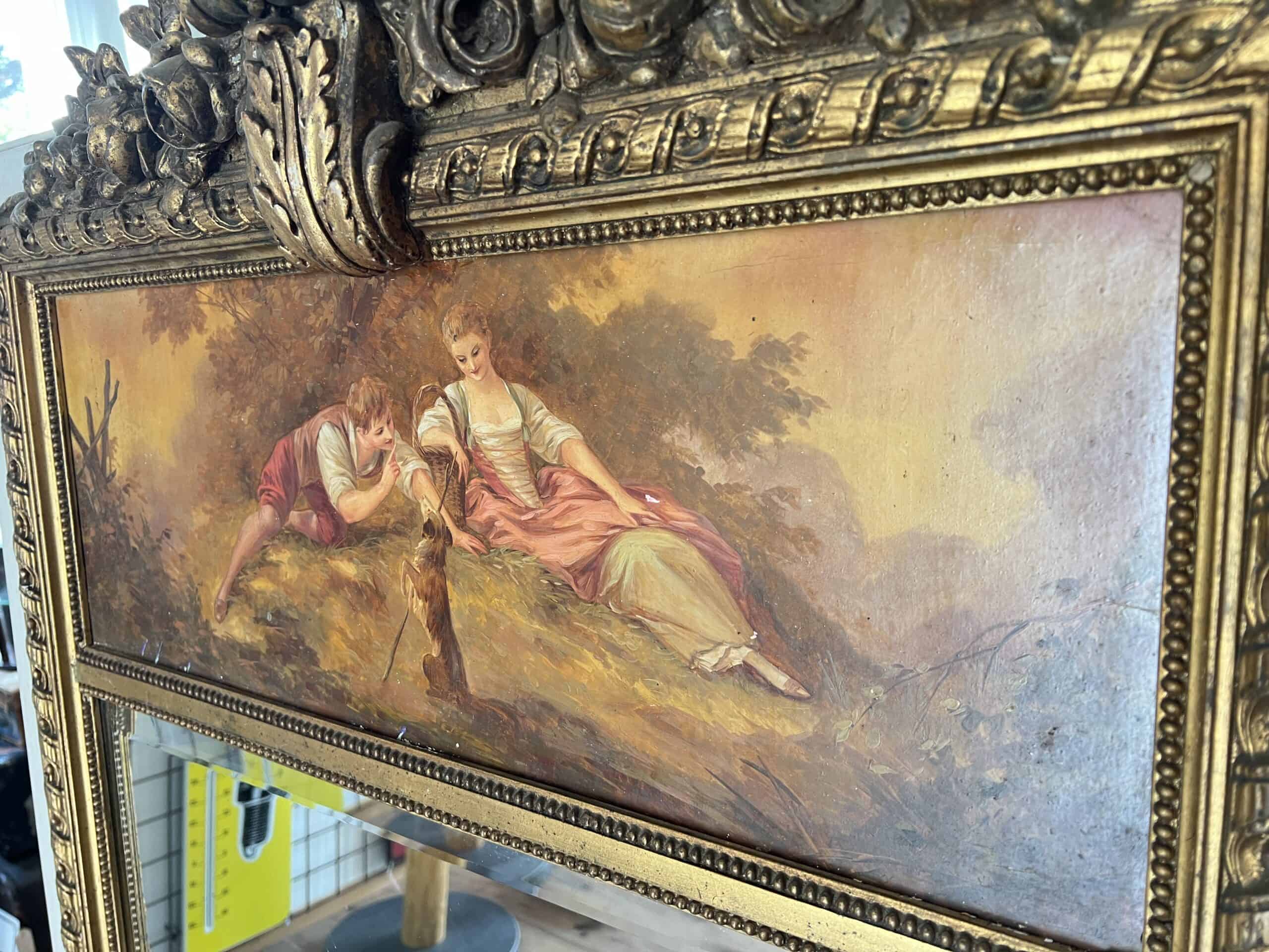 Antiker Spiegel mit Gemälde 19. Jahrhundert mit Gemälde