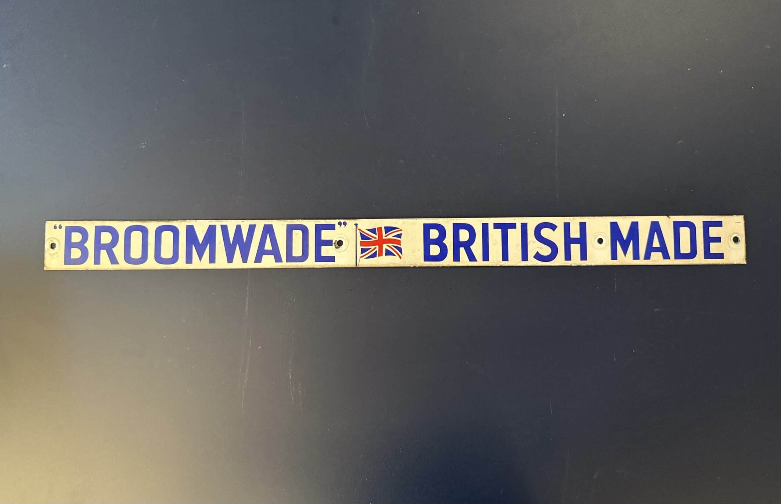 Schönes Emailschild der Firma Broomwade aus England, mittig mit der England Flagge, sehr dekorativ.