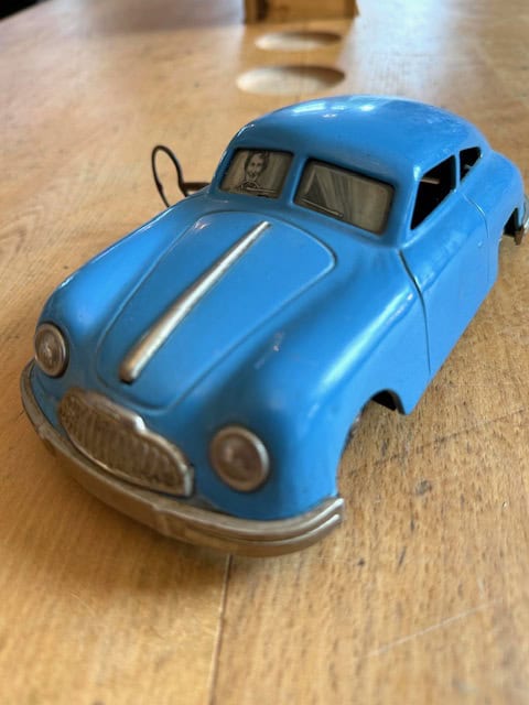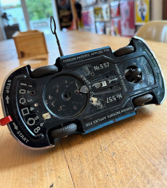 Das Spielzeug lässt sich noch aufziehen und Fährt im Kreis, braucht aber einen Service.