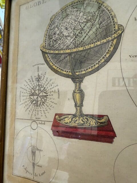 Seltener Kupferstich Globe Terrestre / Globe Celeste Kupferstich Handkoloriert Jahr 1756, gut erhalten in alter Rahmung.