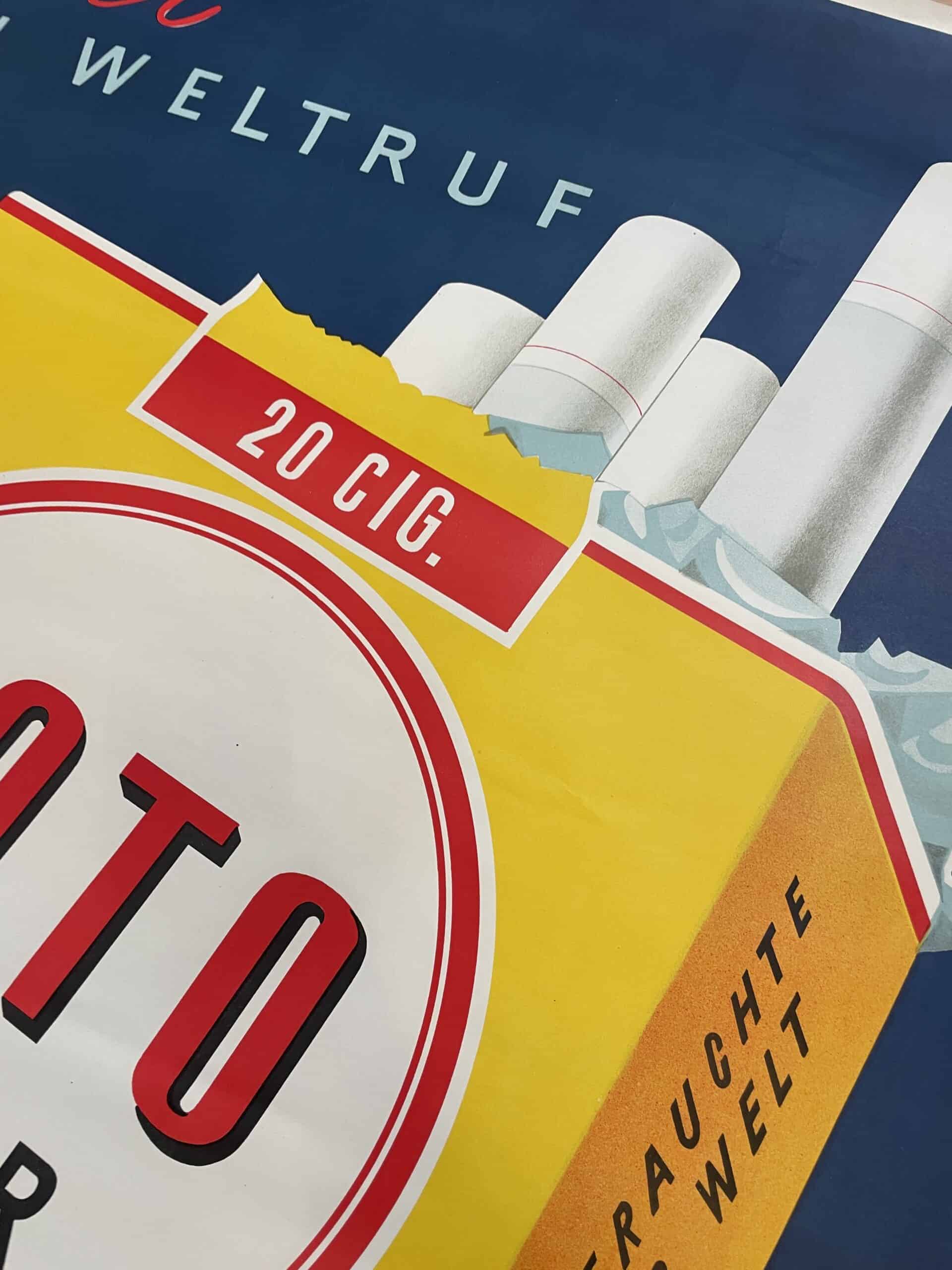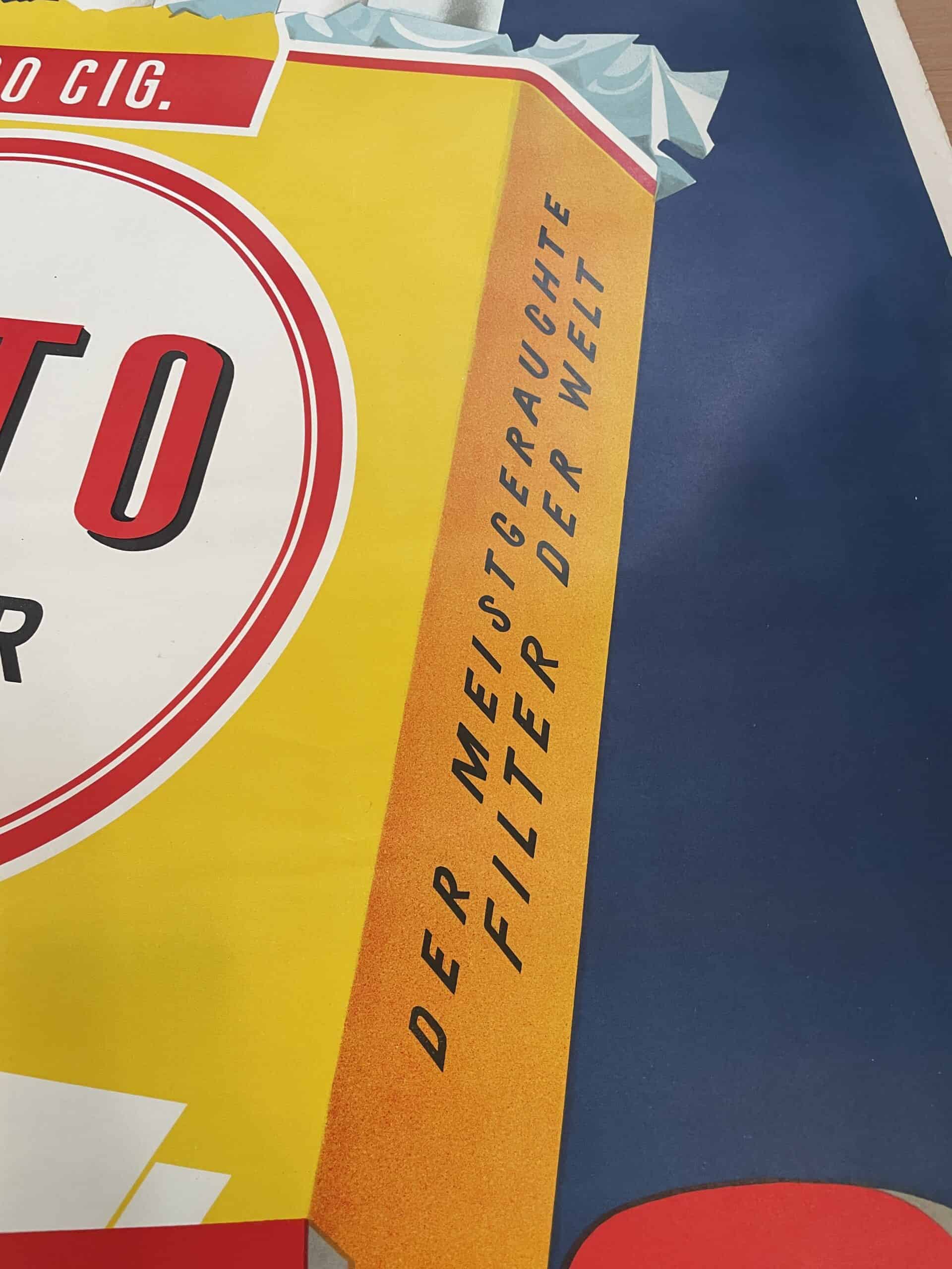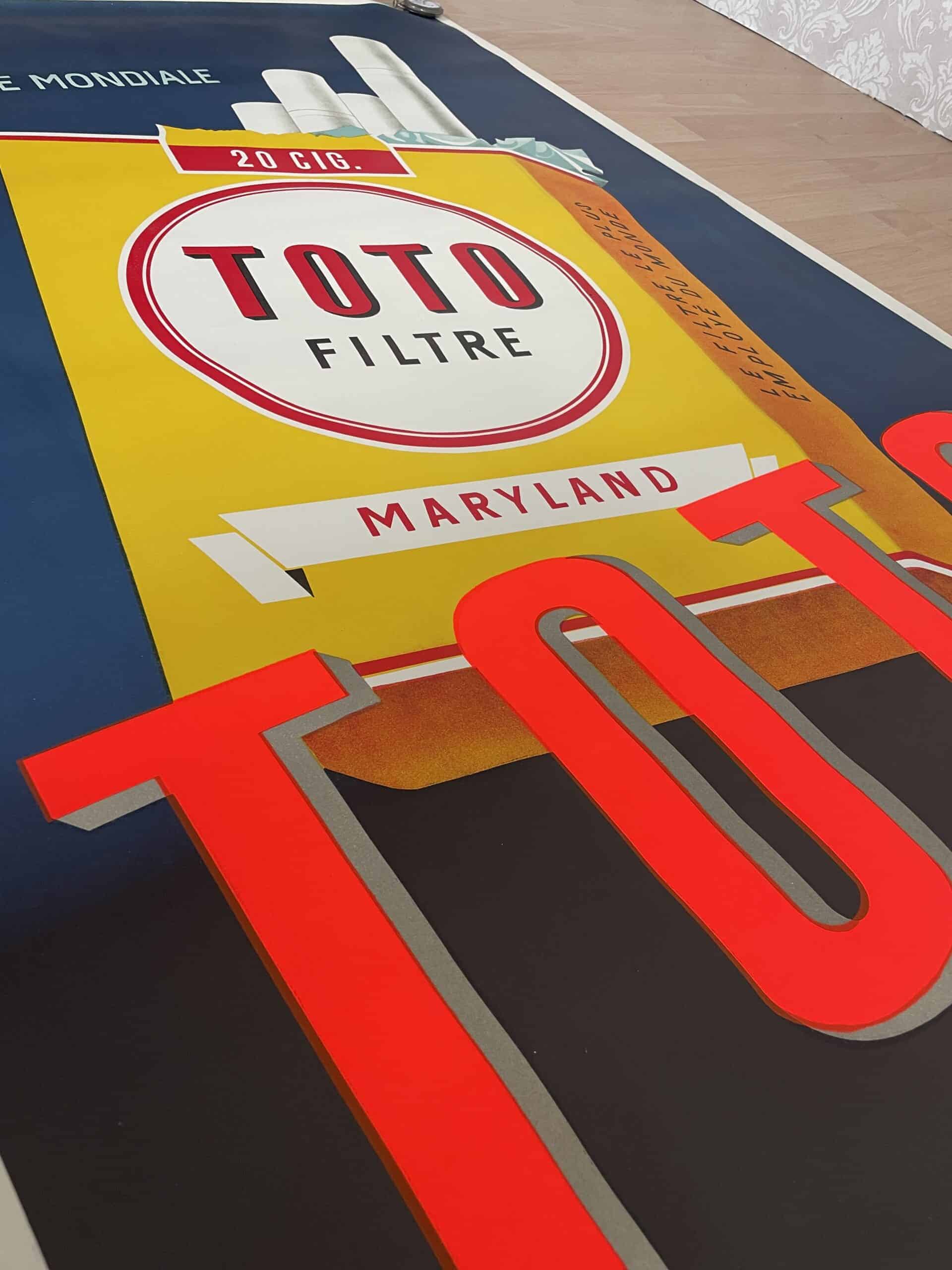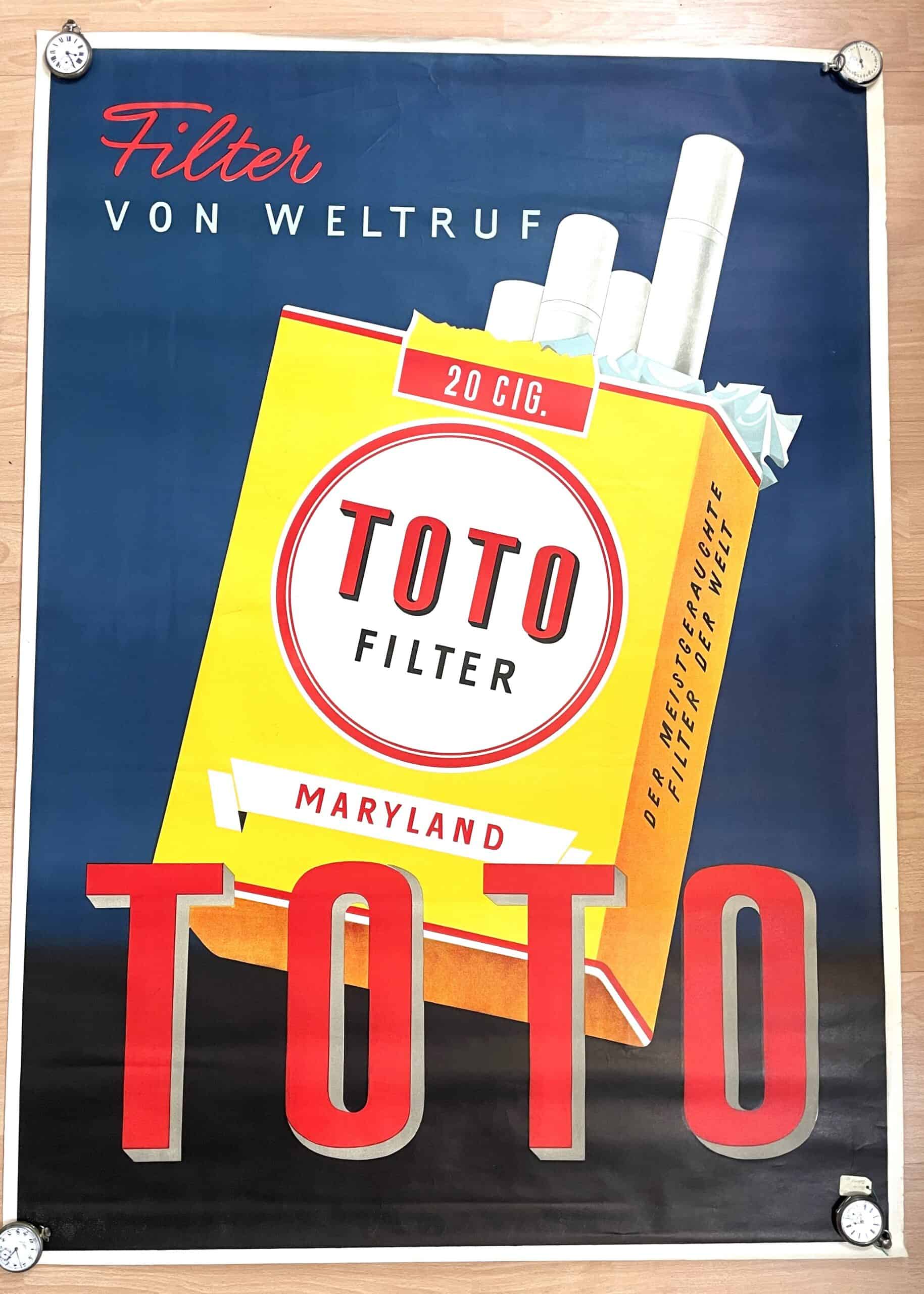 Tolles Werbeplakat von Maryland Zigaretten „Toto“ in schönem, gut erhaltenem Zustand.