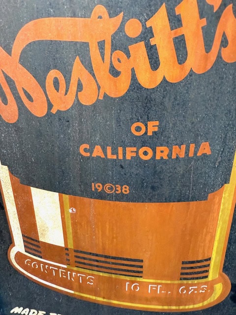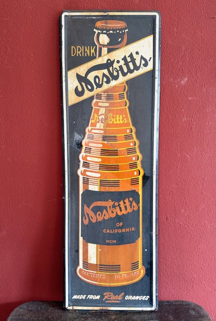 Schlagwörter: 1938, California, drink, Nesbitts, sign, soda, tin, USA