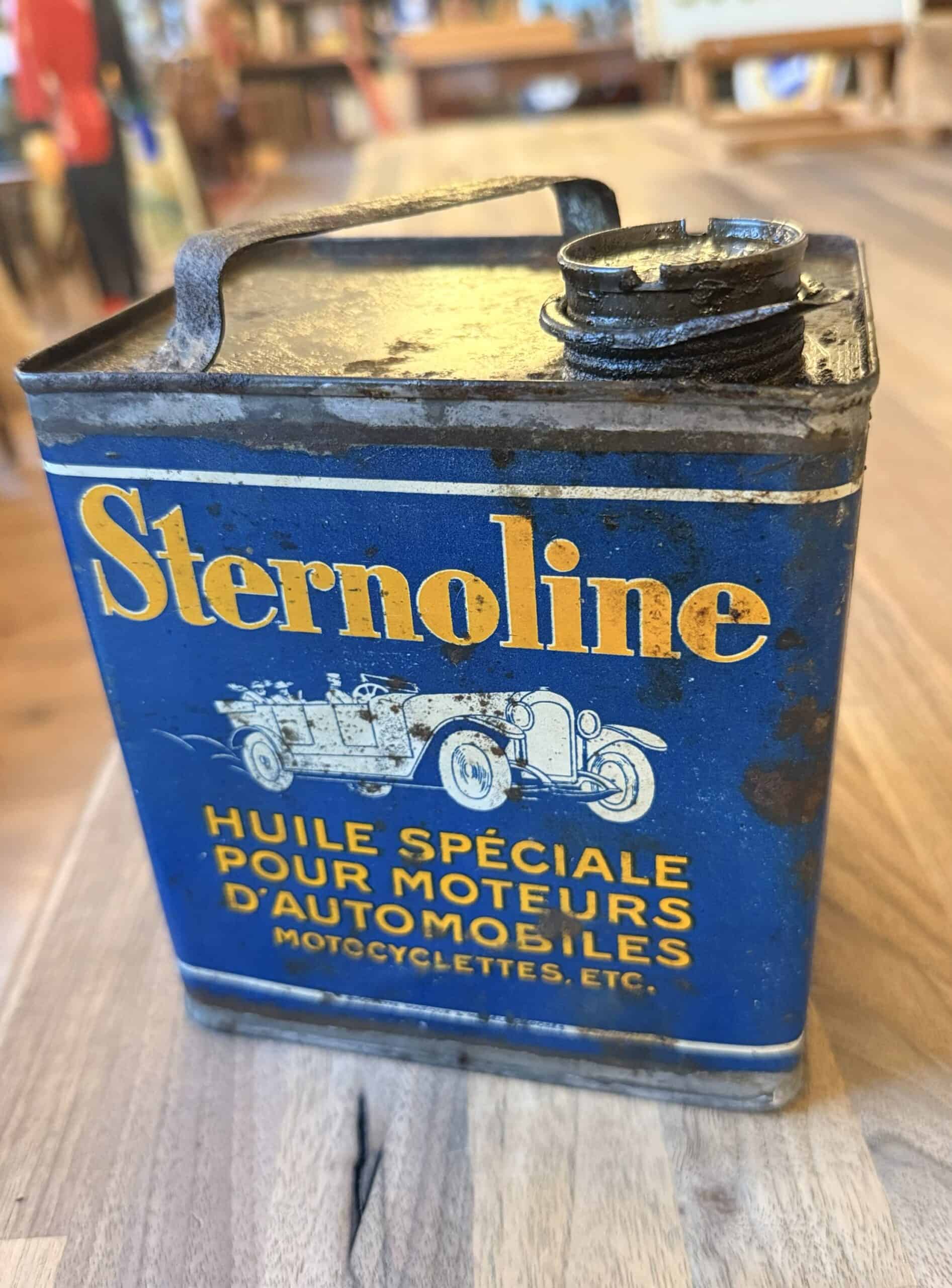 Sehr alter und seltener Ölbidon mit Abbildung eines Fahrzeugs ca aus dem Jahre 1910.