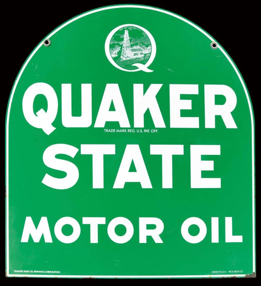 Sehr spezielles altes Blechschild Doppelseitig von Quaker State Motorenöl.