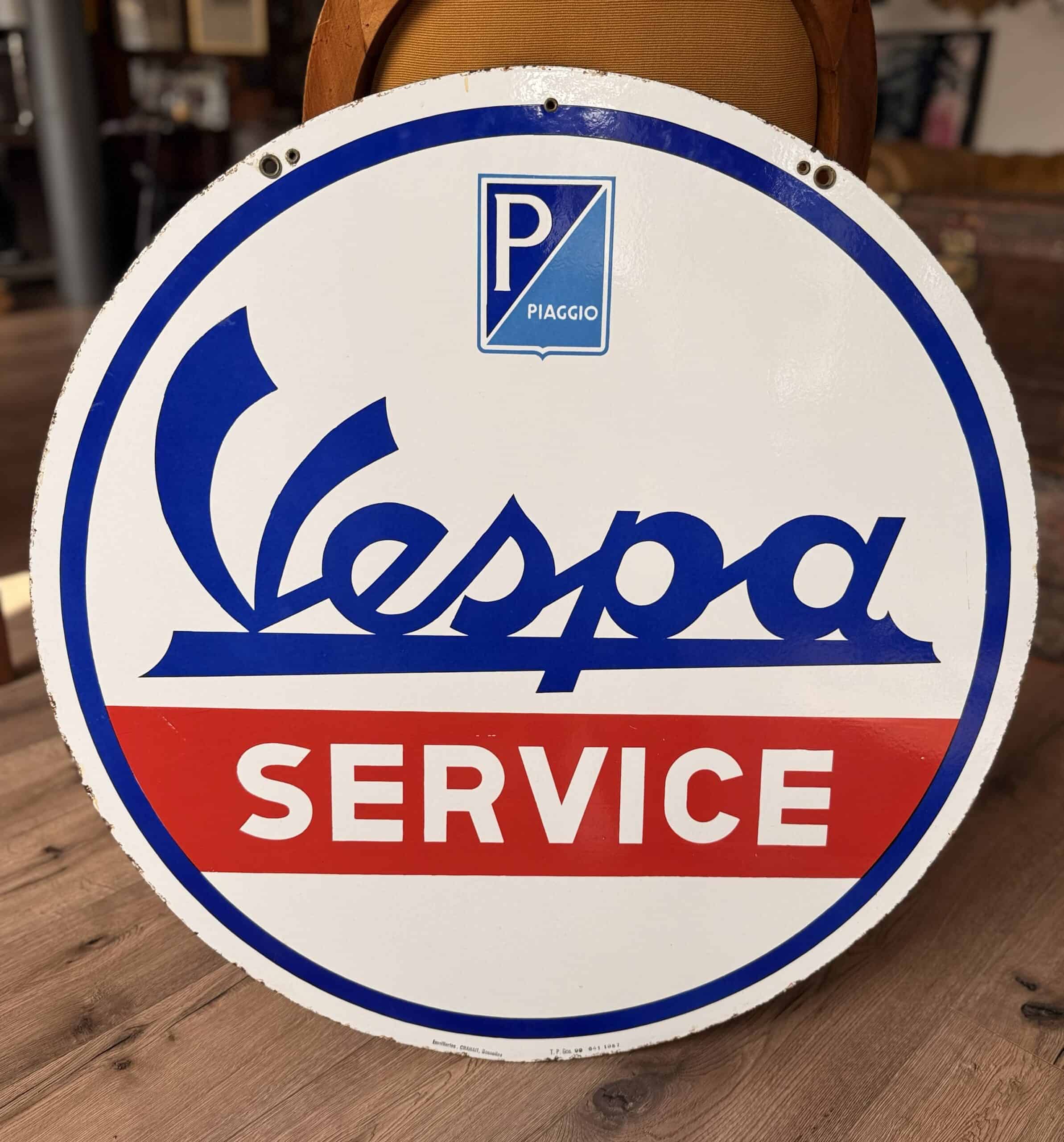 Originales Vespa Emailschild in sehr gutem Zustand von 1957